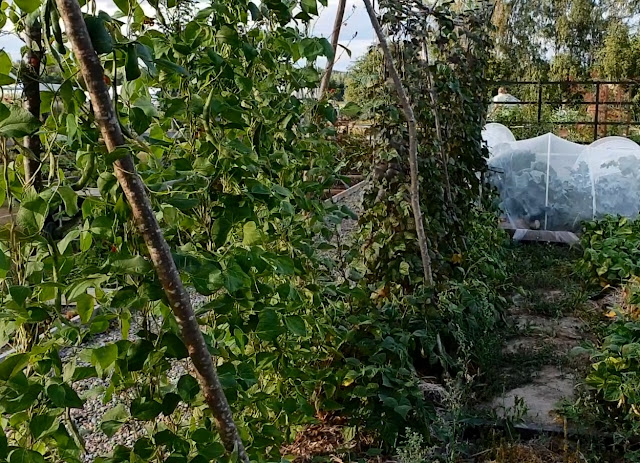 Alla bönor gick också bra. Vi fick en fin skörd av både bondbönor, spritbönor och störbönor. Dock inte märgärtor eller sockerärtor. Vi var inte på kolonin tillräckligt ofta för att kunna skörda. Nästa år kommer vi endast ha bondbönor och spritbönor på kolonin. Mindre stress att skörda kontinuerligt.