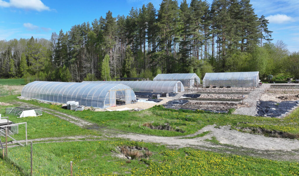 Vi har fyra tunnelväxthus, alla från GjordNära. De olika tunnlarna har olika syften.
