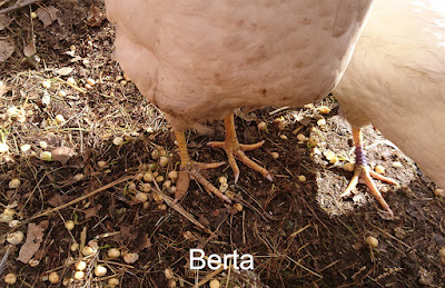 Att använda plåster på sår på hönsfötter va den bästa idén någonsin och jag är irriterad över att vi inte kommit på det tidigare. I början av förra veckan plåstrade vi om Bertas tå och såret under läker fint. På med nytt plåster och sårtejp (utan blå spray) och Berta och Bea går tillsammans några dagar till. Den 25 mars släppte vi ihop Berta och Bea med resten av gruppen. Det gick jätte bra! Det va ingen som noterade Bertas tejpade tå. Inget hack på fötterna. Visst det va lite tjafs några gånger, de är ju tvungna att sätta rangordningen igen. Ernst har dessutom varit duktig med att säga till hönorna som tjafsar. Nu är allt frid och fröjd! Eller också inte…